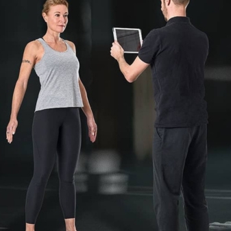 Circunferência, forma, postura e composição corporal em um relatório visual, facilitando a análise do progresso.