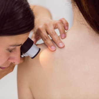 Avalia lesões cutâneas com lente de aumento e luz polarizada, auxiliando no diagnóstico precoce de câncer de pele e outras dermatoses.