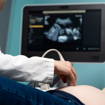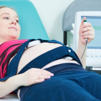 Monitora frequência cardíaca fetal e contrações uterinas para acompanhamento pré-natal detalhado.